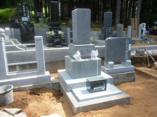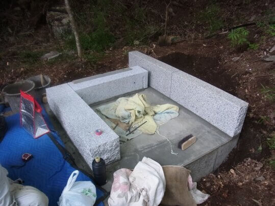 そして西桂町でのお墓完成の写真です。外柵までは作ってあったので納骨室とお石塔を建てました。お盆さんに間に合って良かったですね。