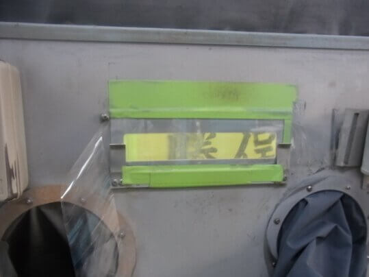 工場では字彫り小屋に石碑を入れて字を彫っています。