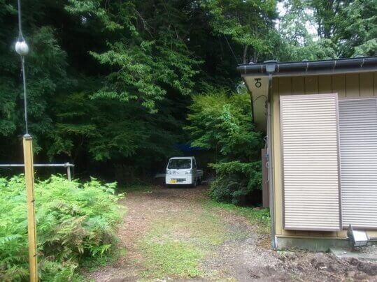 こんにちは、お盆休みも今日まで。毎日暑いですが暑さ寒さも彼岸までというのでそれを信じて明日からお仕事頑張ります。そしてお盆休み前の現場ですが道志村地内の屋敷にお稲荷さんの祠を造ります。現場は軽トラのある所の奧です。蚊が1人あて10匹くらい付いて回って来ます。