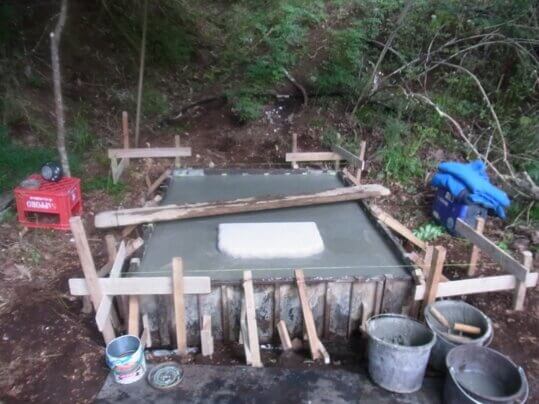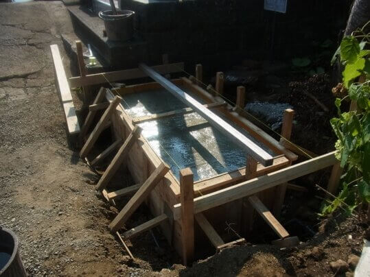 コンクリートを流し込んだ所です。拝み石をコンクリ打設の時に埋め込みました。