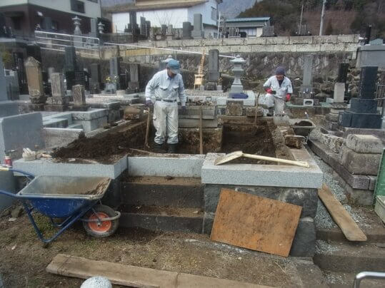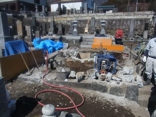 お墓のリフォーム工事始める。