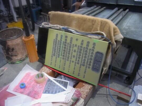 工場では墓誌の字彫りをしています。