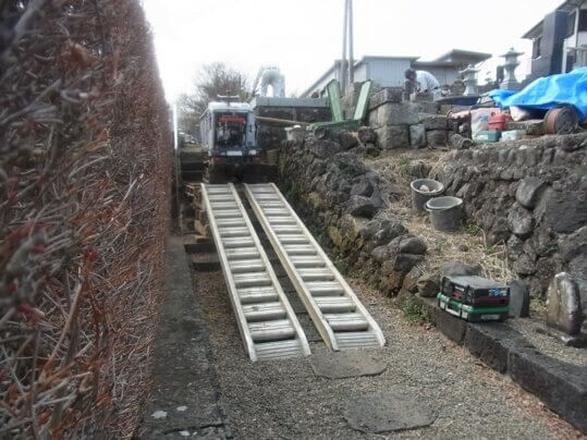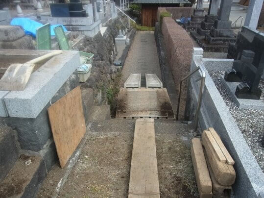階段があってその上に現場があるので足場を造って登りあがれるようにしました。