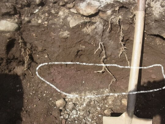 床掘りしていたら赤い富士山の火山灰の地層が出てきました。よくあることですけど紹介しておきます。