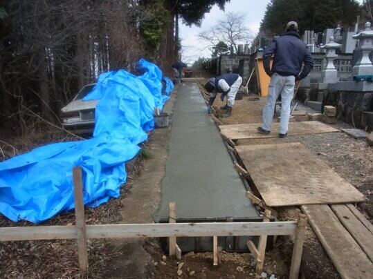 寺墓地の参道、コンクリート舗装する