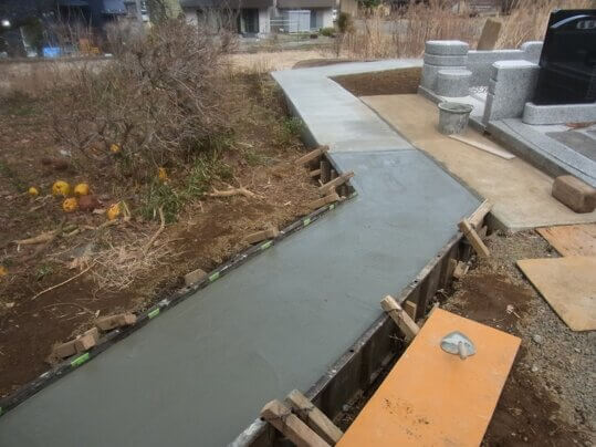 寺墓地参道舗装工事コンクリート打ち終る