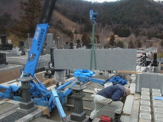 そして外柵部材を据えていきます。重い物で約550キロある石を運び込んでいます。