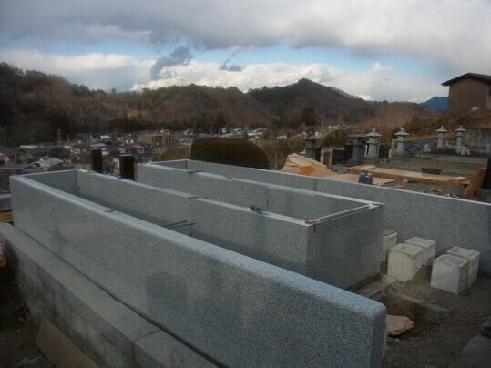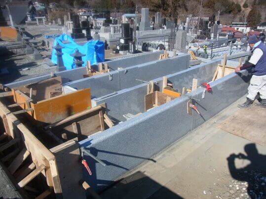 後ろと石と石の継ぎ目に型枠を入れました。この後コンクリートを流し込みます。そして養生期間を取ります。