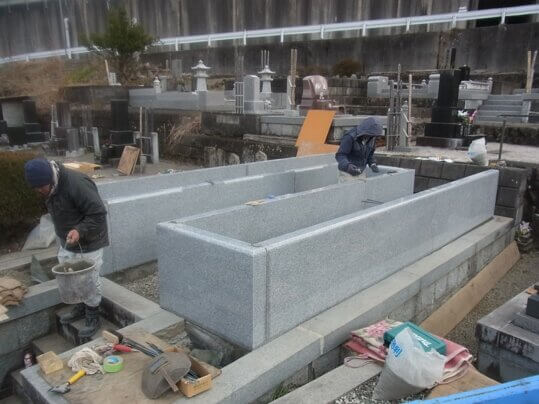 おはようございます、今朝は冷え込みましたね。工場の寒暖計もマイナス8度でした。そしてこの雪今シーズン初めて本格的に降ってくれました、たまには降らないと水不足になったら困りますからね。そして現場ですが樹木墓の施工が進んでいます。石の加工に手間がかかりますがお決まりのはめ込み加工です、強度抜群。